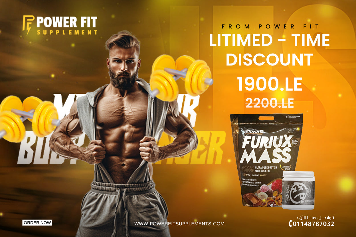 Bundle Offer: Furiux Mass Gainer + Creatine Max Power | High Calories & Strength | Power Fit Egypt