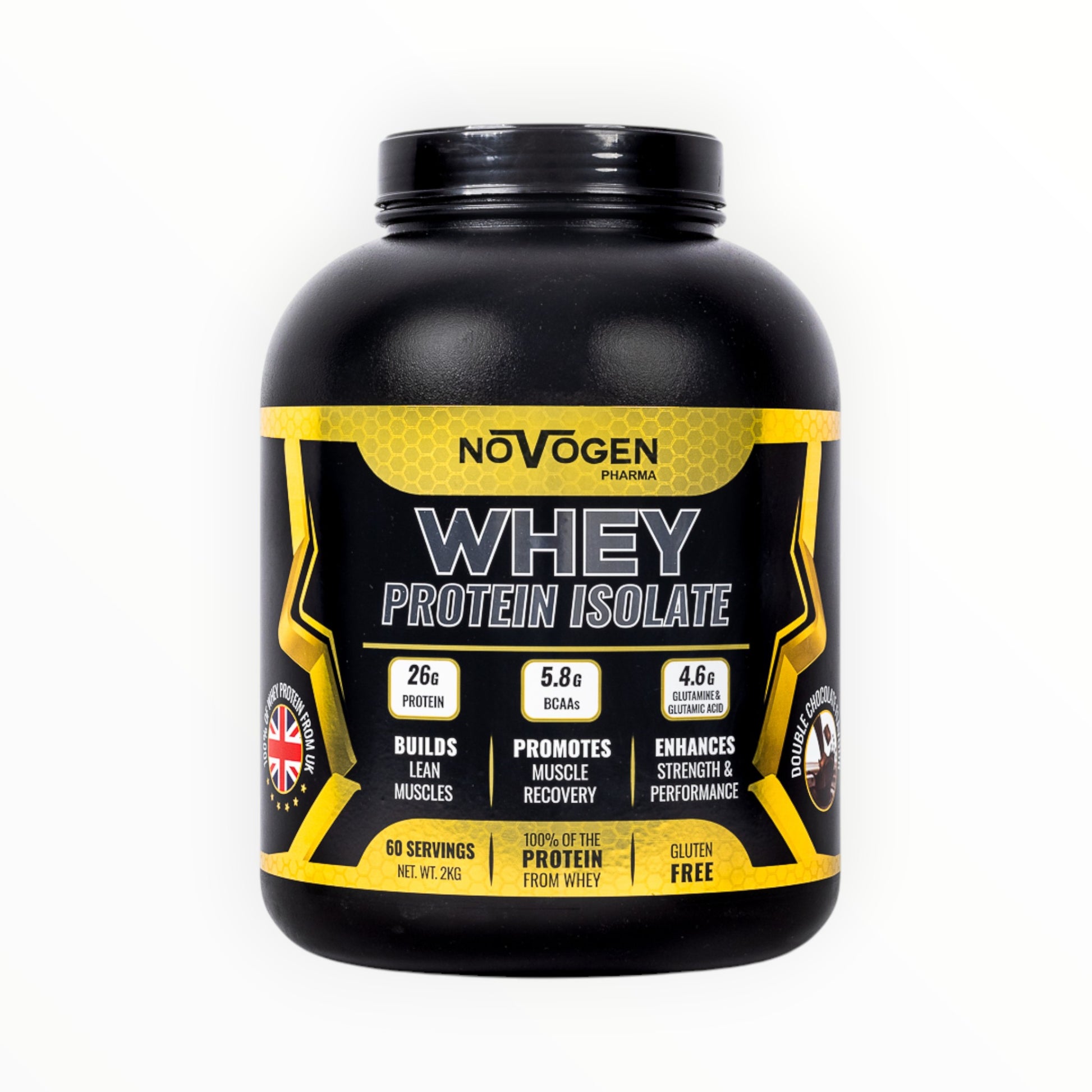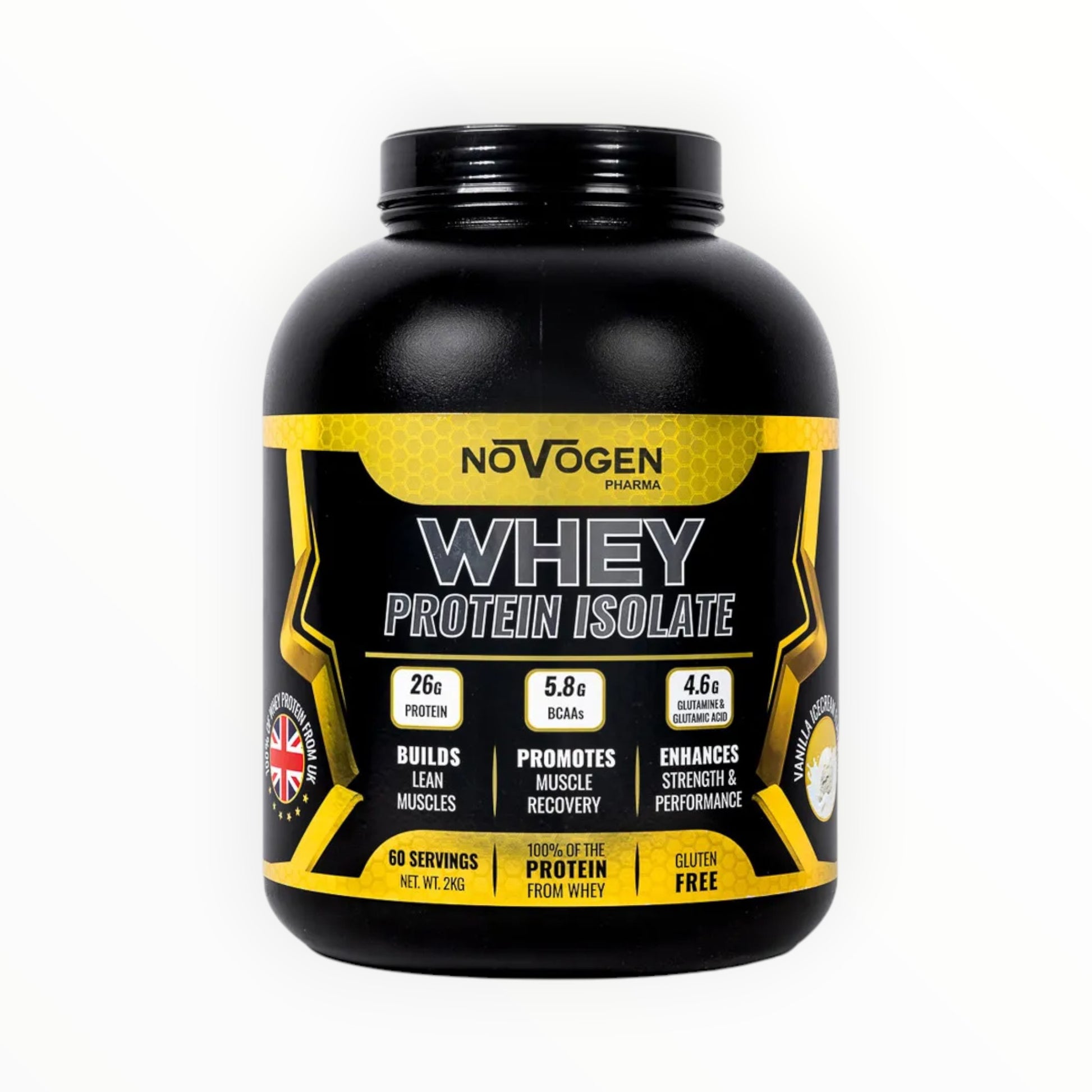 Novogen Pharma Whey Protein Isolate 2kg (60 Servings) – 26g Protein – 5.8g BCAAs – Gluten Free Whey Isolate Egypt