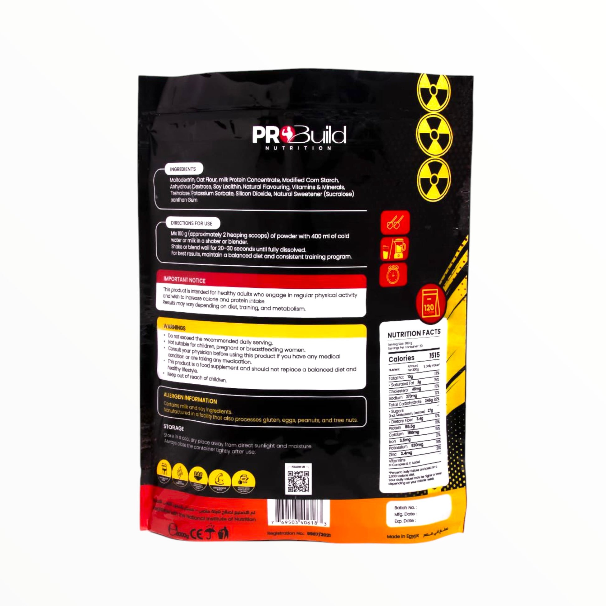 احصل على حجم عضلي كبير وزد سعراتك الحرارية بسهولة مع Pro Build Mass Gainer 6kg (20 حصة) - وهو مكمل غذائي قوي وعالي السعرات الحرارية لزيادة الكتلة مصمم لدعم زيادة الوزن السريعة ونمو العضلات والتعافي .