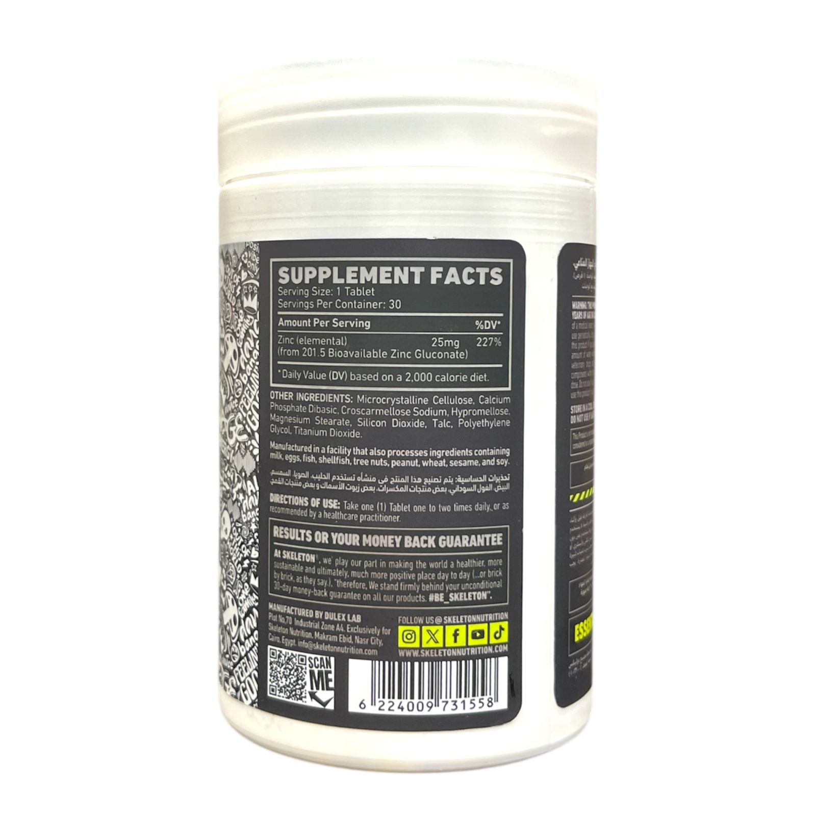 Skeleton Zinc 30 Tablets | Immune Support, Testosterone & Recovery Booster|In Power Fit Supplements Egypt