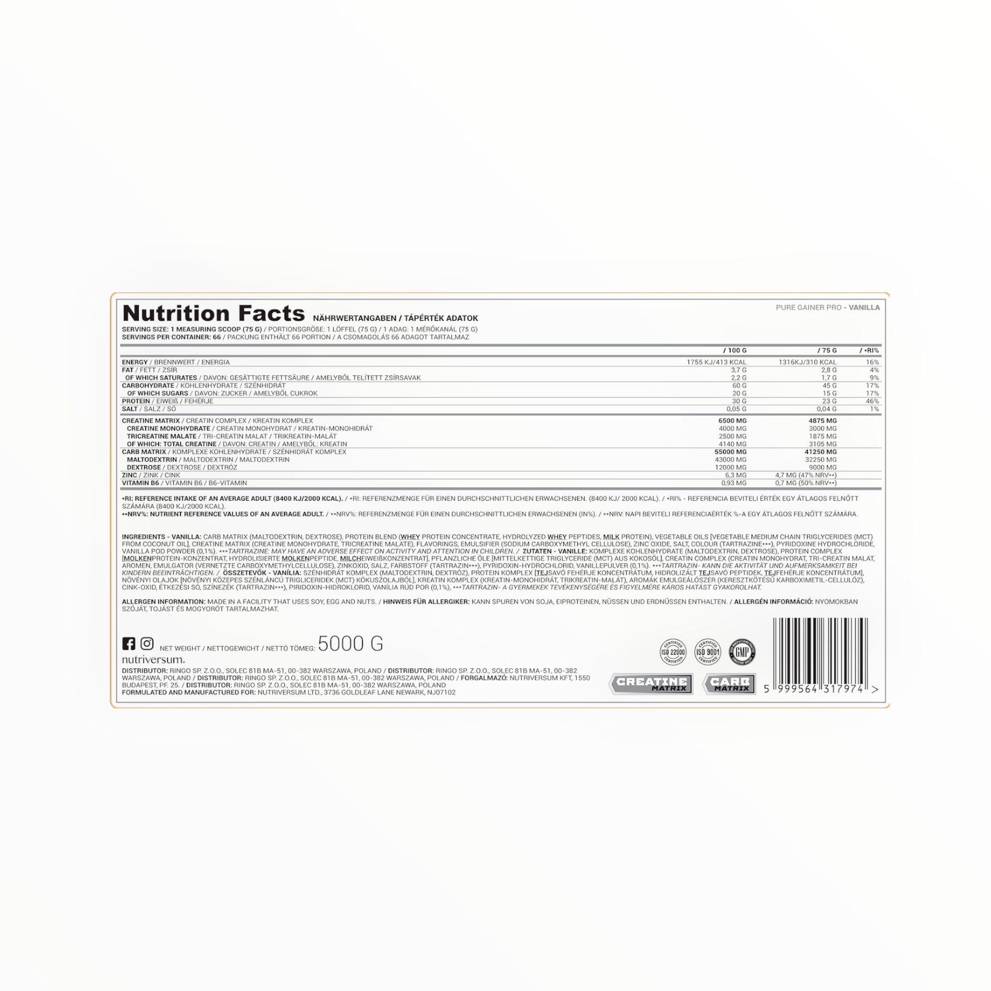Build size, strength, and quality mass with NutriVersum Gainer Pro, a high-calorie mass gainer designed for hardgainers, athletes, and anyone looking to increase daily calorie intake to support muscle growth.